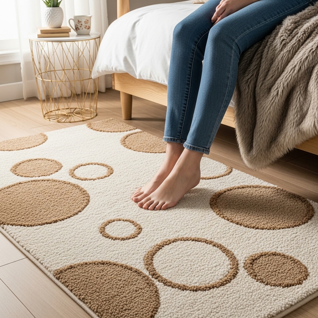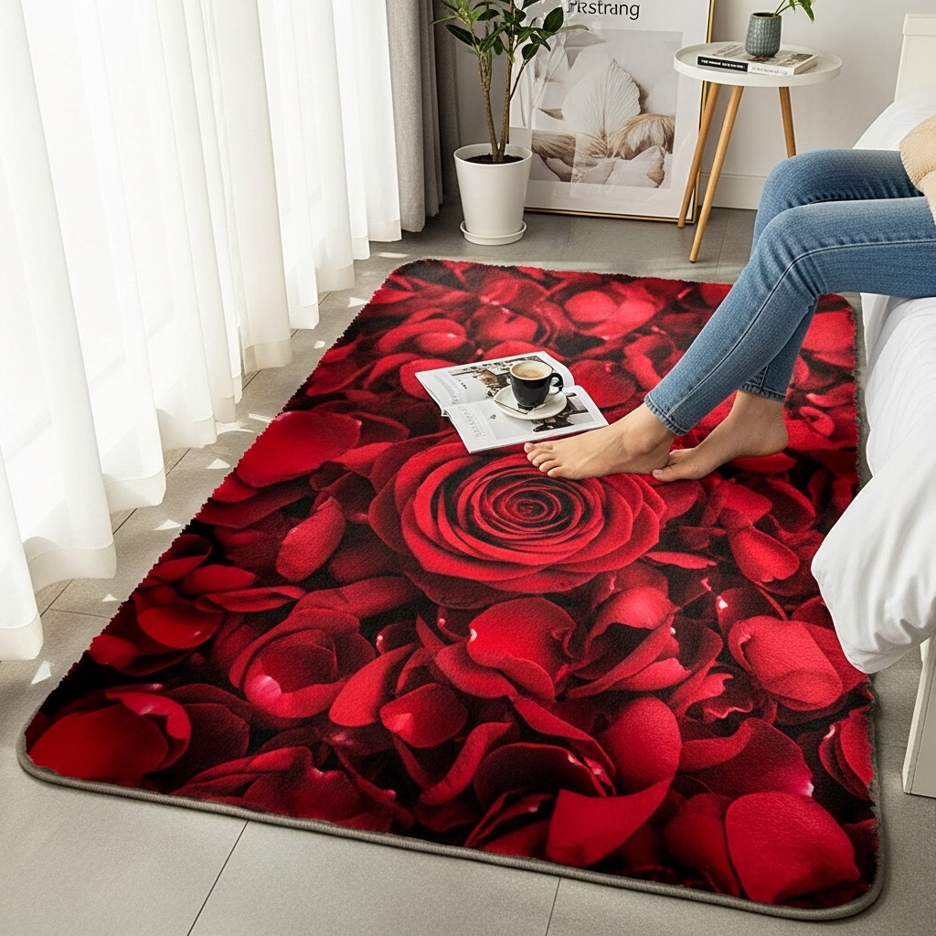 This design warms the space instantly, turning ordinary floors into a sensory delight that heightens romance without overwhelming the room’s palette. Its non-slip base ensures safety during playful moments, and easy-clean fibers handle rose-scented spills effortlessly.