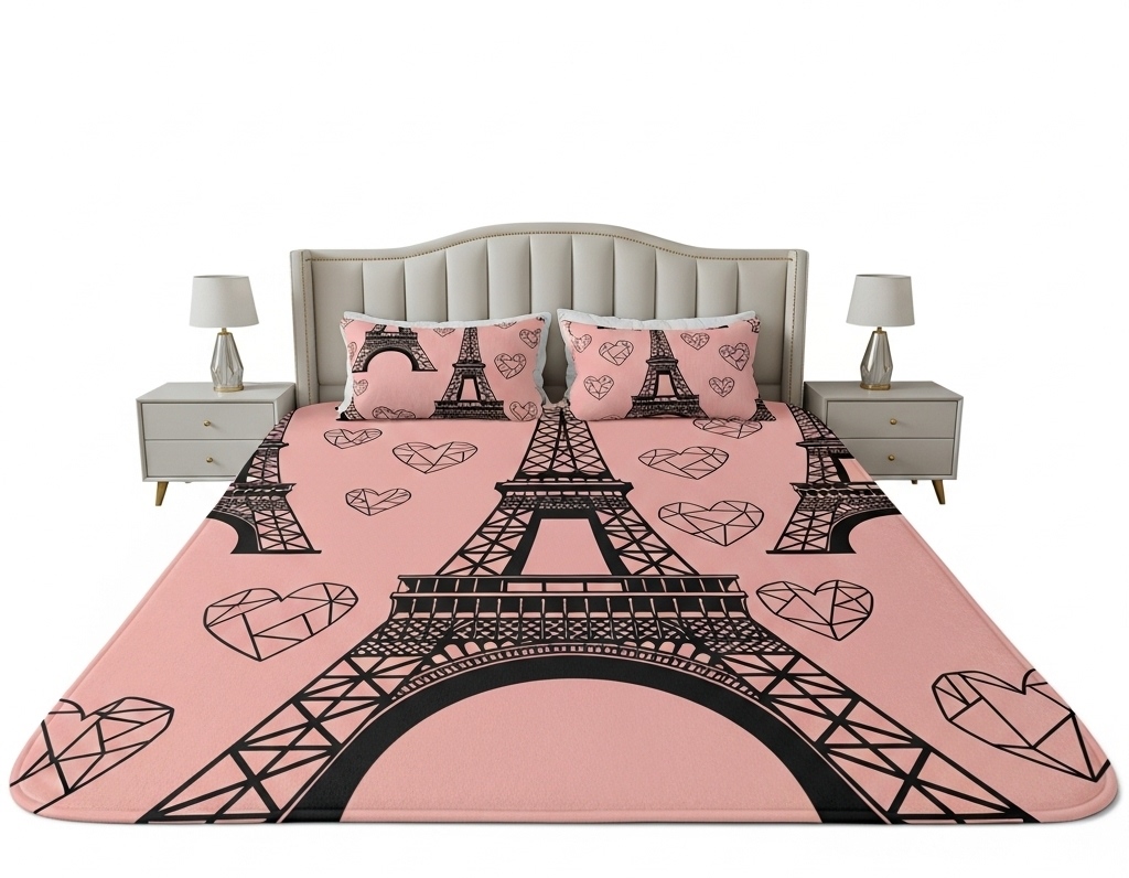 Fade-resistant dyes preserve the dreamy allure, while anti-static treatment keeps it fresh. This design whispers adventure, pairing with velvet headboards to craft a city-of-love escape right in your bedroom.