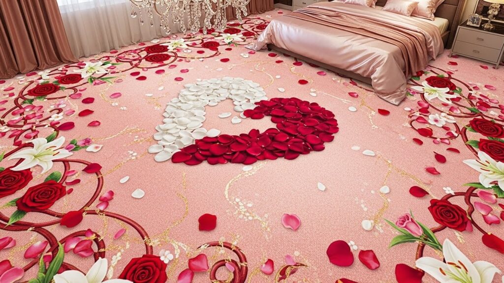 These carpet designs turn your bedroom into a Valentine’s sanctuary, blending beauty, comfort, and passion seamlessly. Soft textures underfoot create warmth, while romantic tones and patterns add an intimate rhythm to the space.