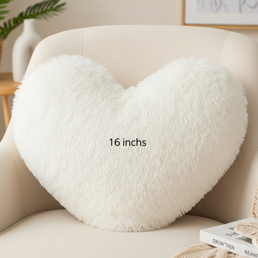 Soft, playful, and irresistibly cozy, this plush white heart-shaped pillow is made for comfort and charm. Measuring 16 inches wide, it features a fluffy boucle fur texture that feels indulgent to the touch.