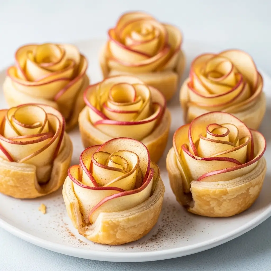 These intricate, artistic little desserts are a visual masterpiece, effectively combining the beauty of a floral bouquet with the comforting flavors of a classic apple pie.