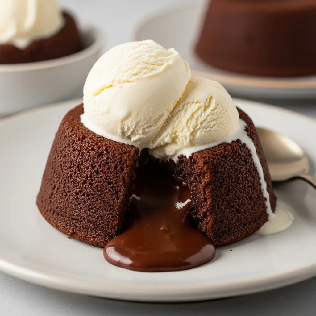 Breaking through the delicate outer sponge reveals a warm, luxurious pool of dark chocolate that pairs flawlessly with cold vanilla bean ice cream.