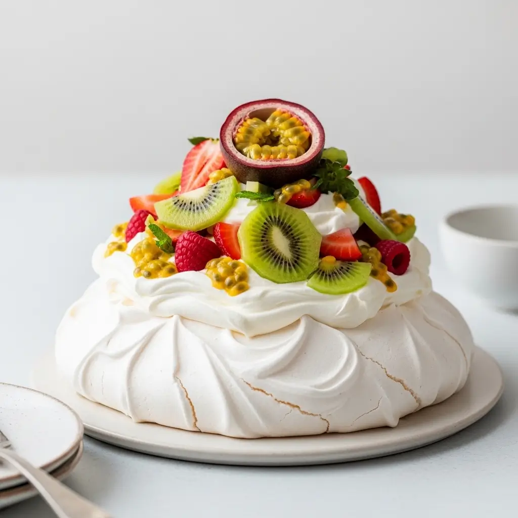 Egg whites, sugar, cornstarch, heavy cream, mixed fresh fruitWhip egg whites to stiff peaks, bake slowly until crisp, cool completely, and top with cream and vibrant fruits.It is a magnificent, visually spectacular centerpiece dessert that remains delightfully light, airy, and entirely gluten-free.