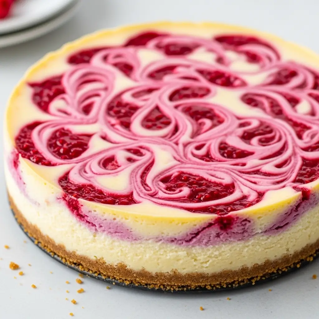 Cream cheese, graham crackers, raspberries, sugar, eggsPress the crust, blend the cheese filling, swirl the fruit puree on top, and bake in a water bath.The breathtaking pink swirls make it a visually perfect, deeply flavorful centerpiece for a springtime celebration.