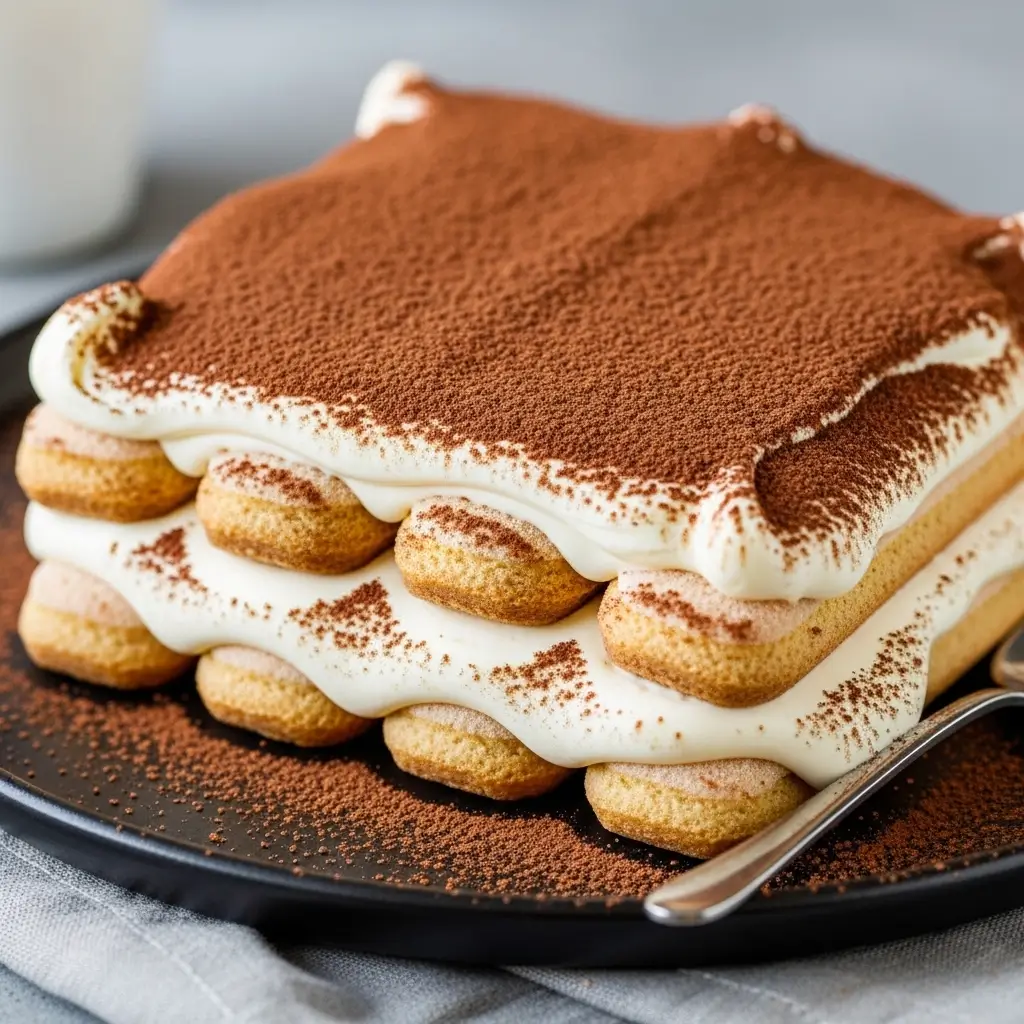 Delicate ladyfinger cookies are generously soaked in robust espresso, then layered with an airy, rich mascarpone cheese mixture and heavily dusted with bitter cocoa powder.