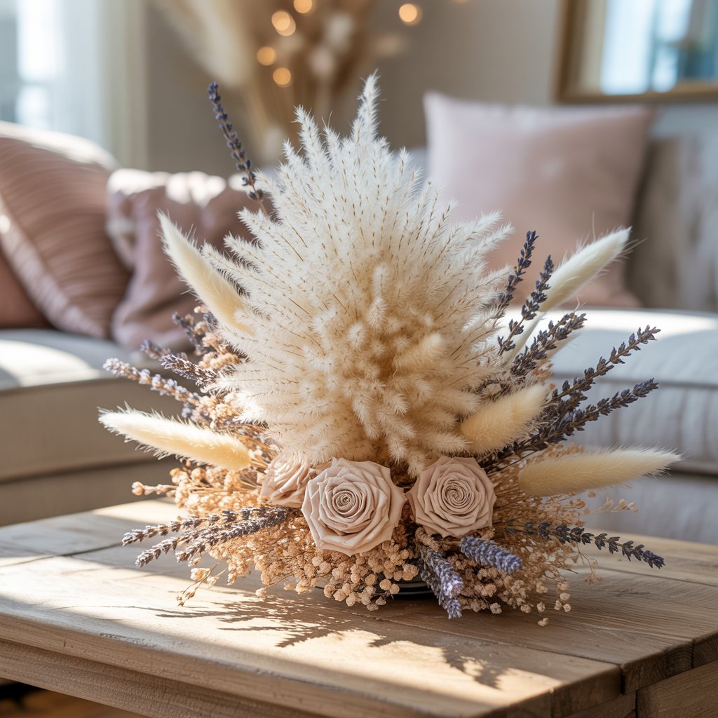Yep, dried flowers and pampas grass are basically the floral revolution Christmas never knew it needed. Tuck dried florals into wreaths, garlands, or even hang bunches alongside fairy lights for that effortlessly chic vibe. Pampas grass stalks? They add height and just the right wild touch to your boho setup. Don’t knock it till you try it.