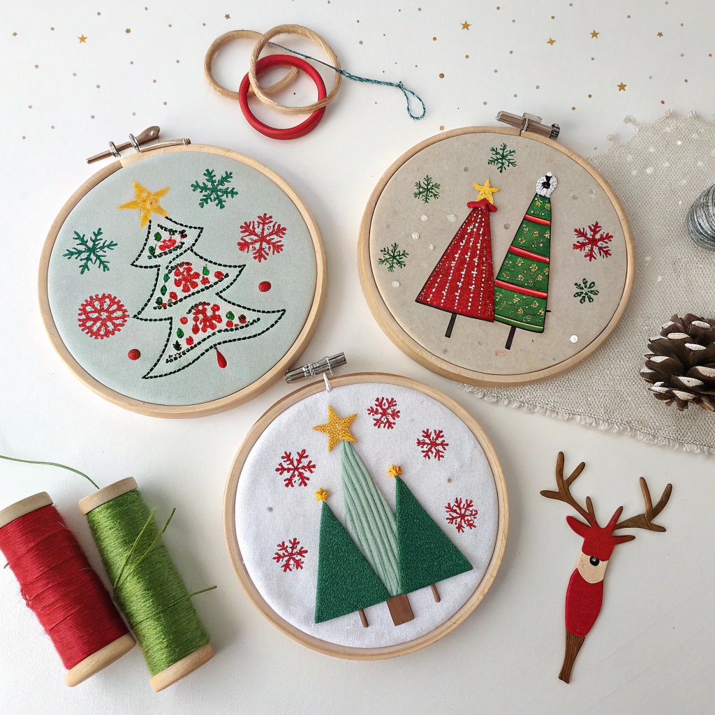 Think outside the box with embroidered pieces to decorate your tree or walls. Small embroidery hoops, colorful fabric patches, or stitched designs add a unique artisanal touch. You don’t have to be a pro sewer there are plenty of ready-made pieces out there, or grab a hoop and some needles for a fun holiday craft session.