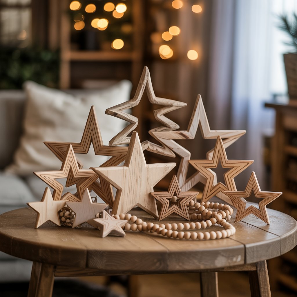 Wood is the unsung hero of boho decor, especially around the holidays. Swap those shiny balls for wooden stars, driftwood stars, or even tiny wooden beads strung together like garlands.