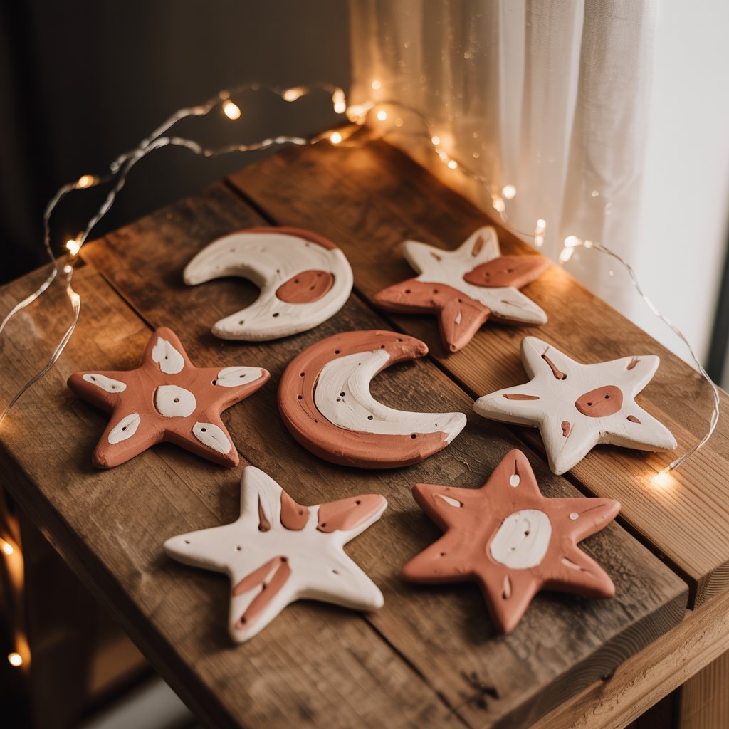 If you’ve got a creative streak, DIY clay ornaments are a fantastic boho project. You can make little stars, moons, or abstract shapes, paint them in earthy hues, and bake them right at home. They bring that imperfect charm boho is known for and look so much cooler than your basic glass balls. Plus, they’re super Instagram-worthy.