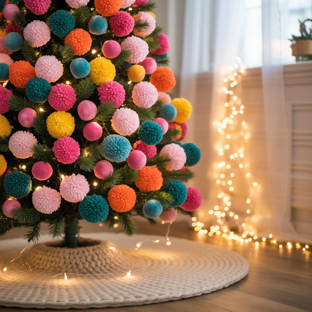 Want your tree and room to bring some fun energy? Pom poms are the answer. Hanging colorful wool pom poms all over your tree adds texture, cheer, and a handmade feel.