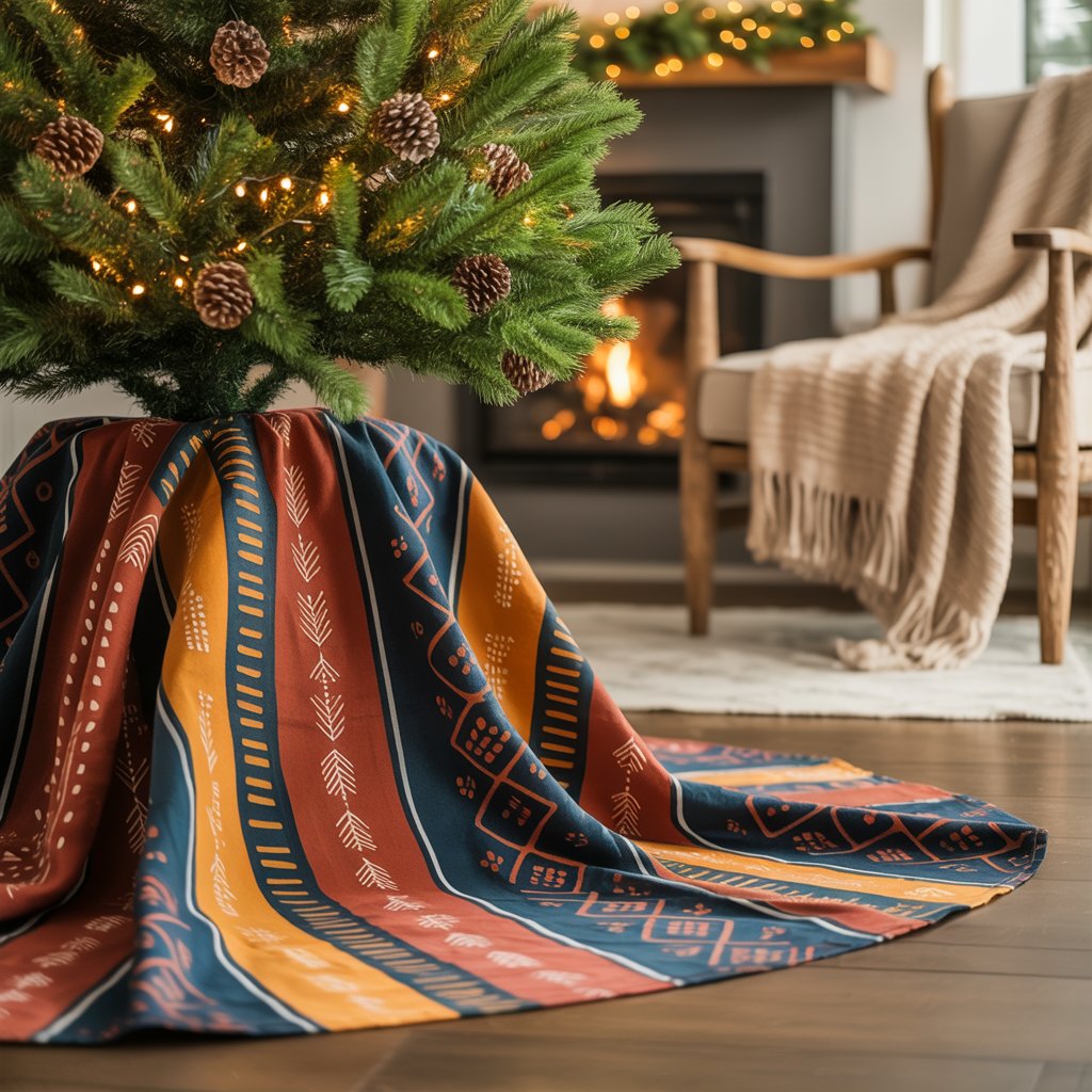Mud cloth or patterned woven throws work like a charm. Not only do they anchor your tree visually, but they also tie in your whole boho theme beautifully. Bonus: These are totally reusable year after year.