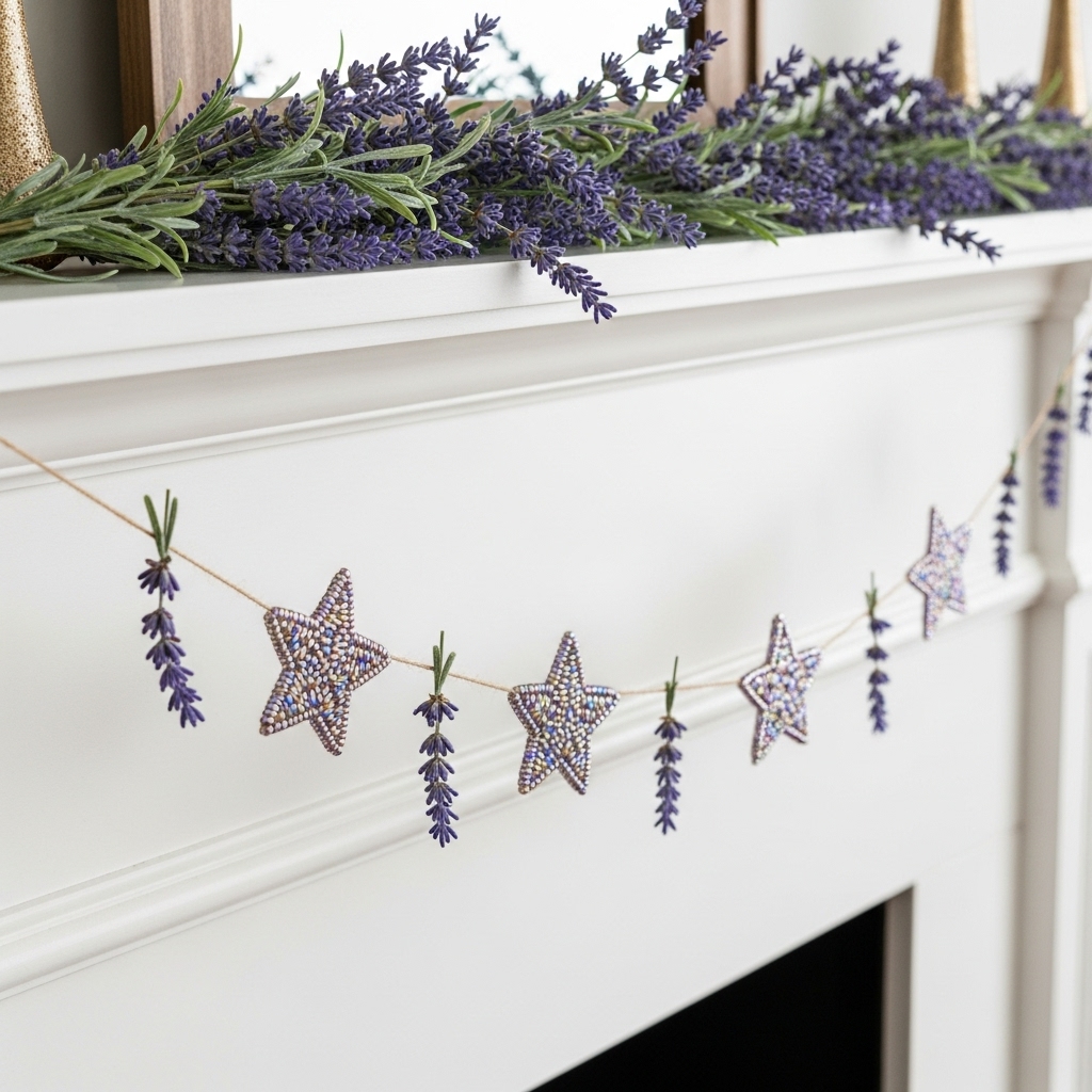 Feeling a bit boho? Try making or buying bead tassels in neutral or lavender hues, then attach small bundles of dried lavender to the knots. Hang these tassels at varying lengths along your mantel for a playful, textured look that still feels festive.
