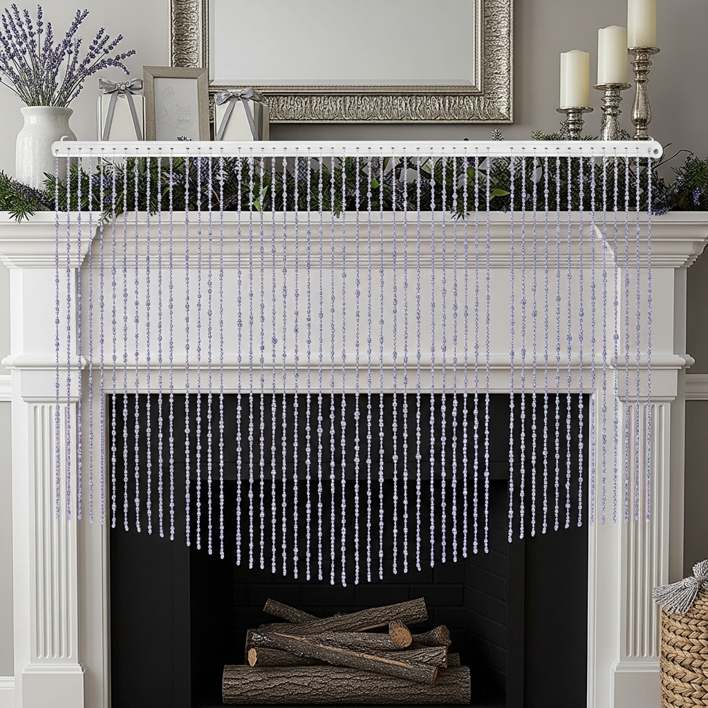 7. Lavender-Scented Bead Curtain as a Mantel Backdrop
