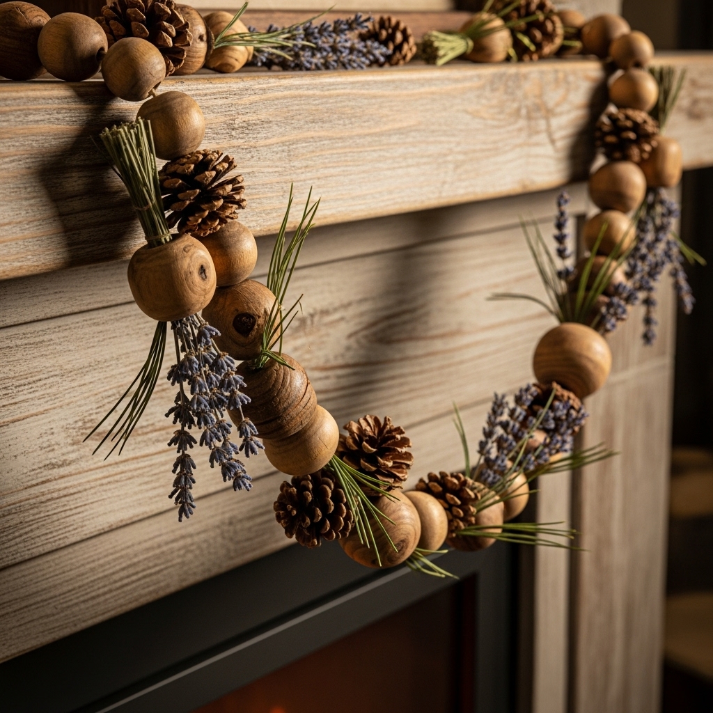 Okay, now imagine this: chunky wooden beads, lavender sprigs, and pinecones all strung together in a garland. It’s like Christmas took a peaceful walk in the woods and brought back all the good stuff. This rustic vibe is perfect if you want your mantel to whisper “holiday magic” rather than shout it.