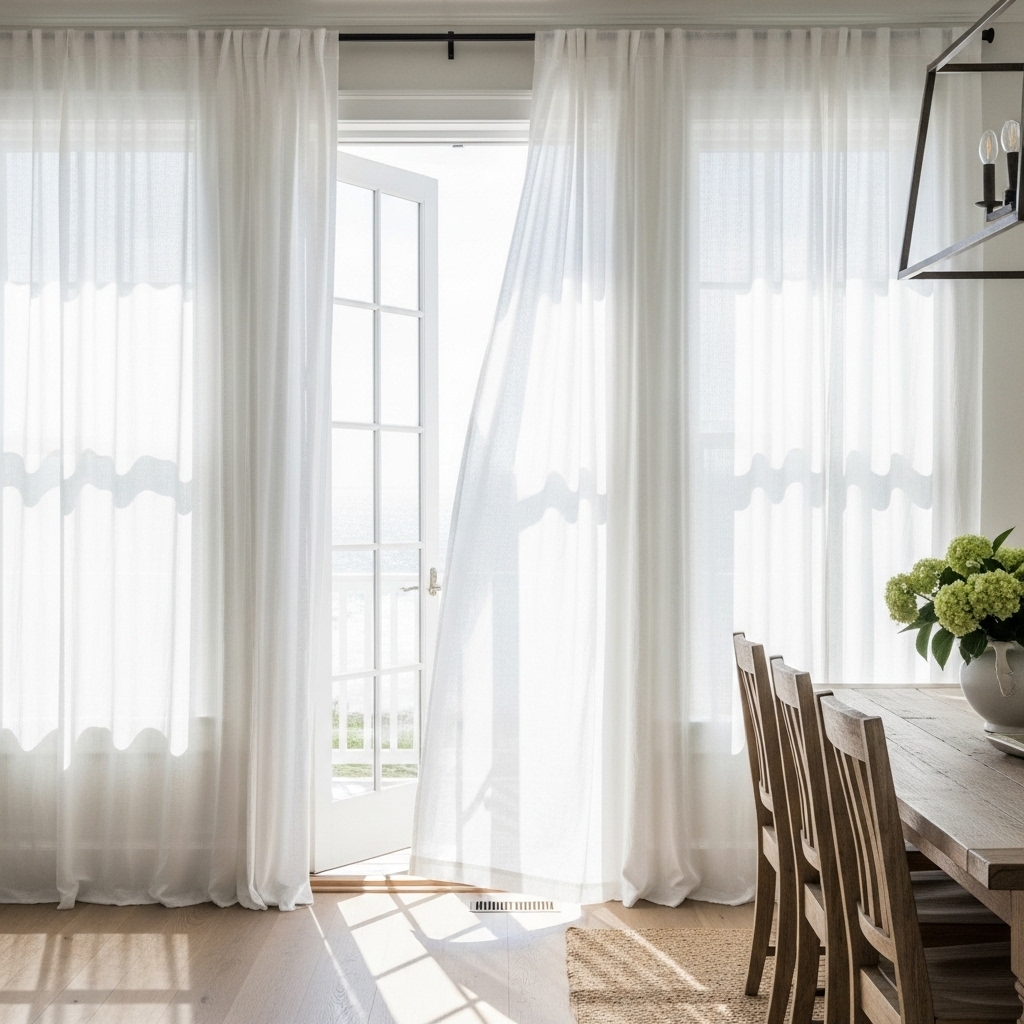 White or unbleached natural tones are best, as they diffuse sunlight into a flattering, ethereal glow. Avoid heavy drapes or stiff valances; you want the fabric to hang naturally, perhaps even puddling slightly on the floor for a touch of romance.