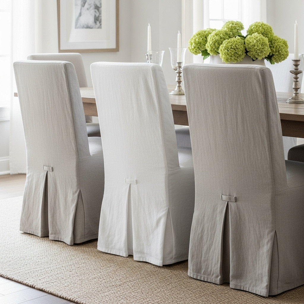 Beyond their visual appeal, slipcovers are incredibly practical for dining spaces; they can be easily removed and washed, making them ideal for handling spills while maintaining a pristine, airy appearance that feels welcoming rather than precious.