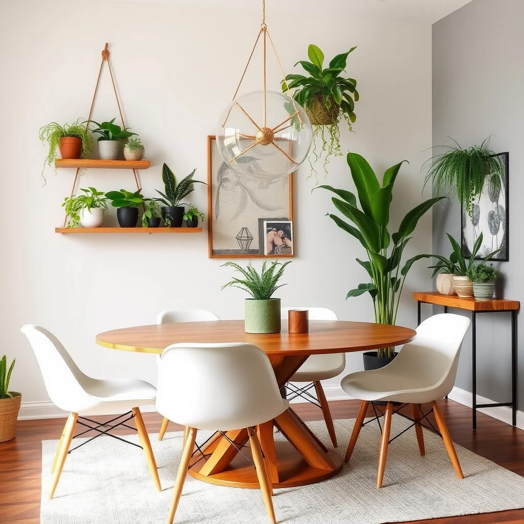 Bringing indoor plants into your dining room introduces a refreshing sense of life and warmth. Ferns, succulents, or other easy-care greenery thrive in diverse light conditions, perfectly suiting a modern setting.