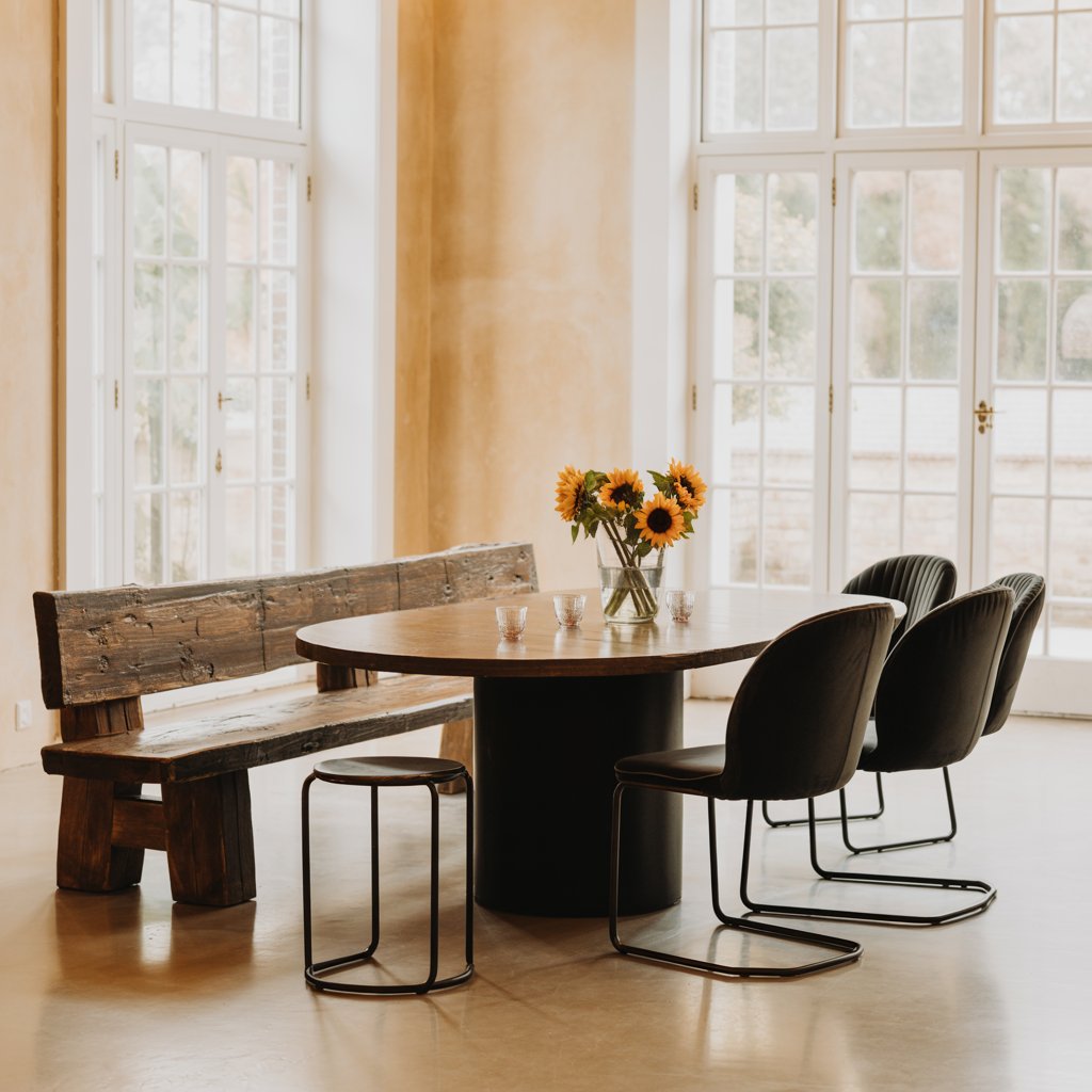 Blend benches, chairs, and stools for a dining room that feels lively, adaptable, and full of character. This mix not only adds depth and visual interest but also caters to varied seating preferences, ensuring guests feel comfortable and welcome.