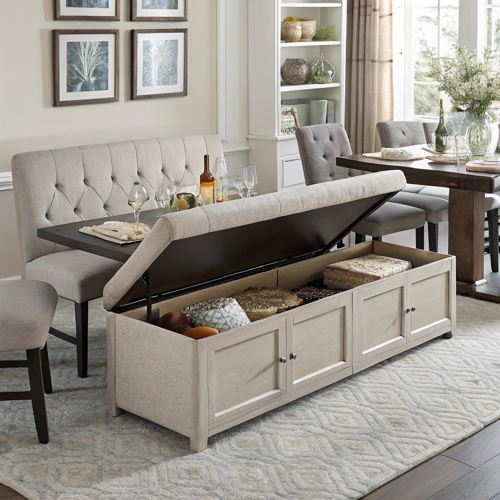 A bench with hidden storage, for instance, provides seating while discreetly tucking away table linens or other essentials, keeping the room clutter-free. By embracing multifunctional designs, you create a dining space that feels spacious yet inviting, stylish yet efficient, perfectly suited for modern living and gatherings with family or friends.