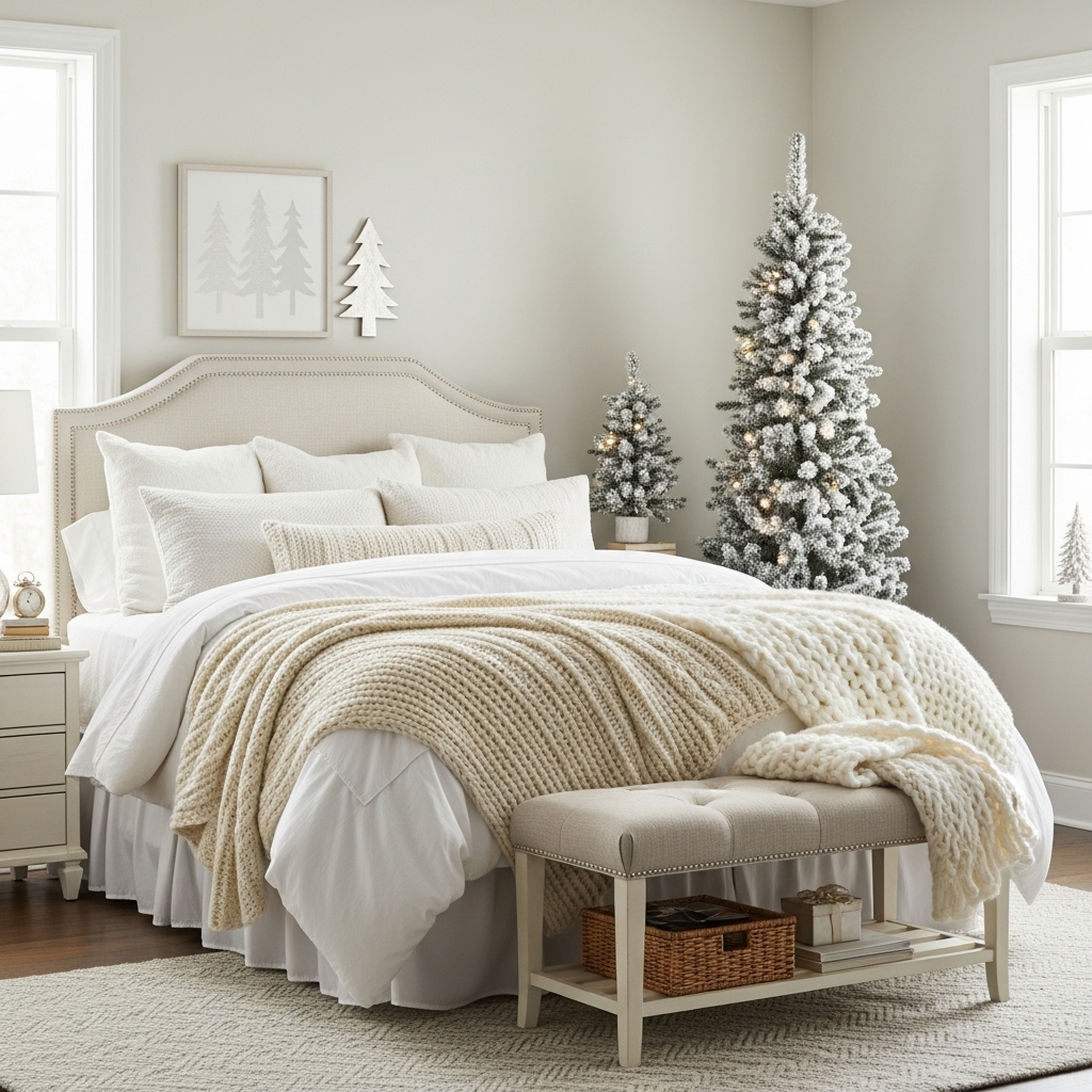 1. How can I decorate a small bedroom for Christmas without clutter? Focus on vertical elements like wall wreaths, fairy lights, and draped garlands. Use slim trees or tabletop versions, and layer bedding for coziness without taking floor space.