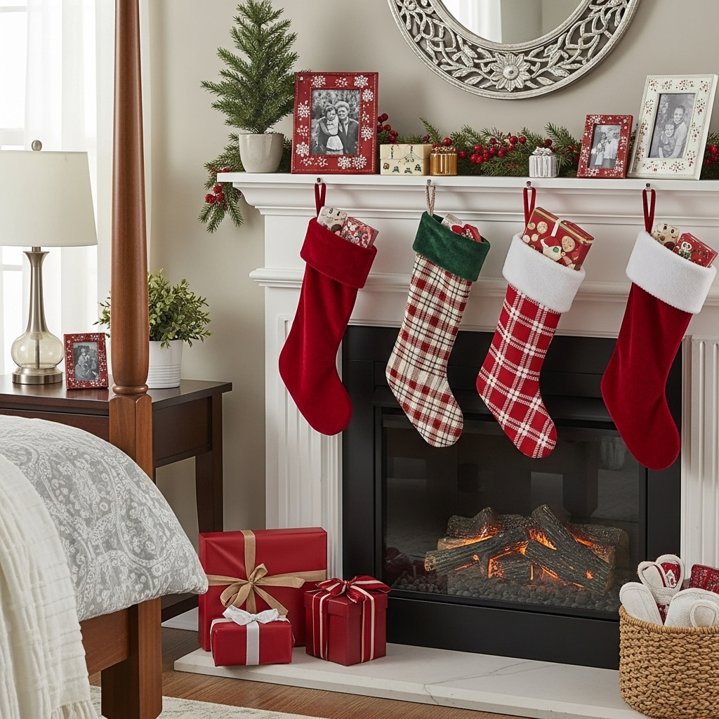 Hang stockings from the bedpost or across the mantel, letting them sway softly as you fill them with little surprises and thoughtful treats.