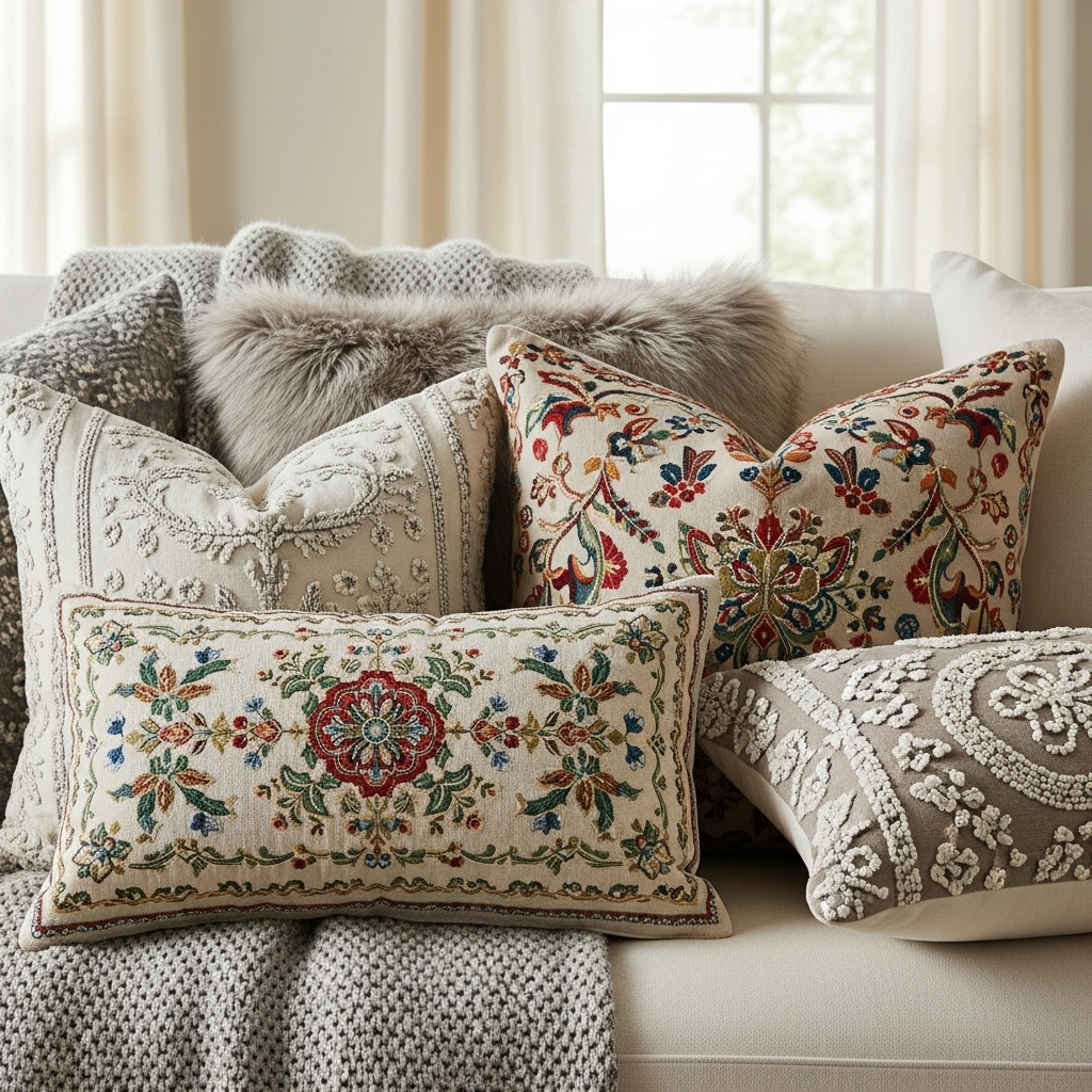 The blend of cozy fabrics and subtle seasonal touches adds a layered feel that draws the eye. With each cushion offering its own character, the space gains a plush, inviting atmosphere that makes settling in for the evening feel effortless and irresistible.