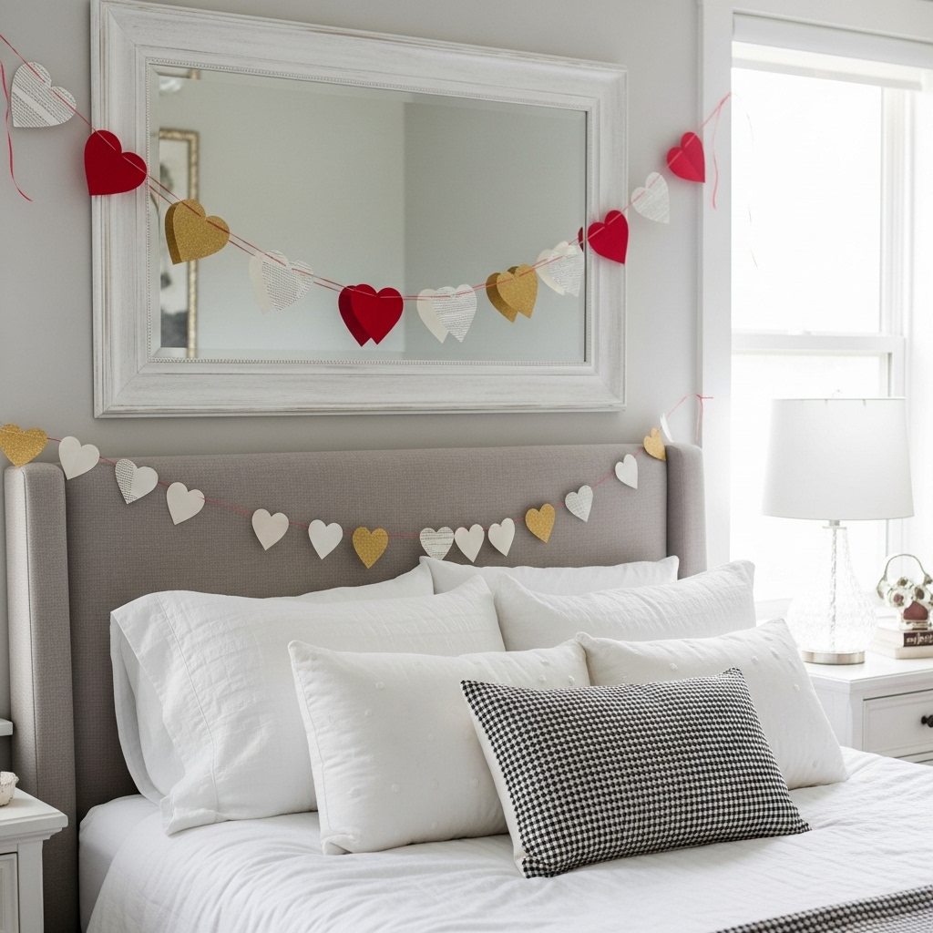 Adding a handmade element shows effort and care, which is the essence of Valentine’s Day. You can create simple yet stylish garlands using paper, felt, or even old book pages cut into hearts.