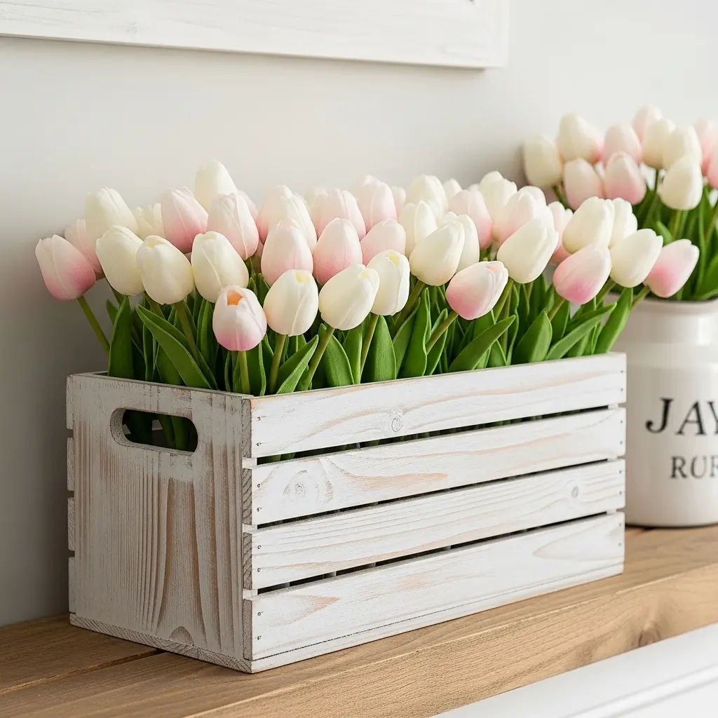 1. The Whitewashed Wooden Tulip Crate