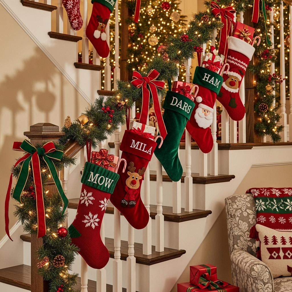 6. Stocking Display on Stair Railing