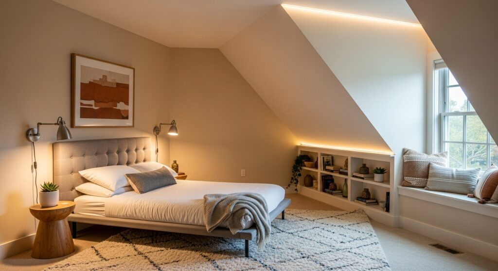 So, if you’ve got a room with a funky roofline and you’re wondering how the heck to make it look fabulous, you’re in luck. I’ve been there, done that, and learned a few tricks along the way. Ready to transform your sloped ceiling space into a dreamy retreat? Let’s do this!