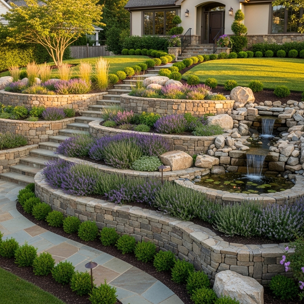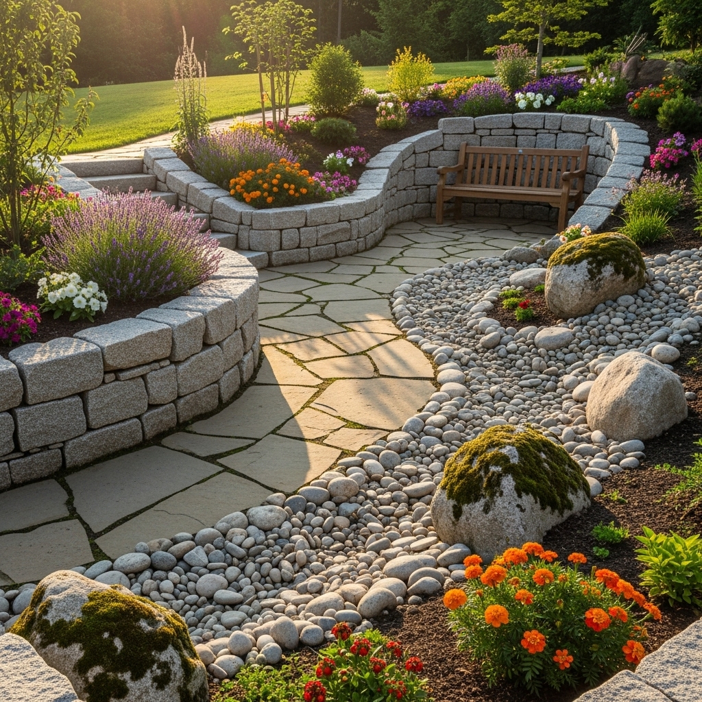 - Retaining walls: Stone, wood, or concrete, depending on your style.