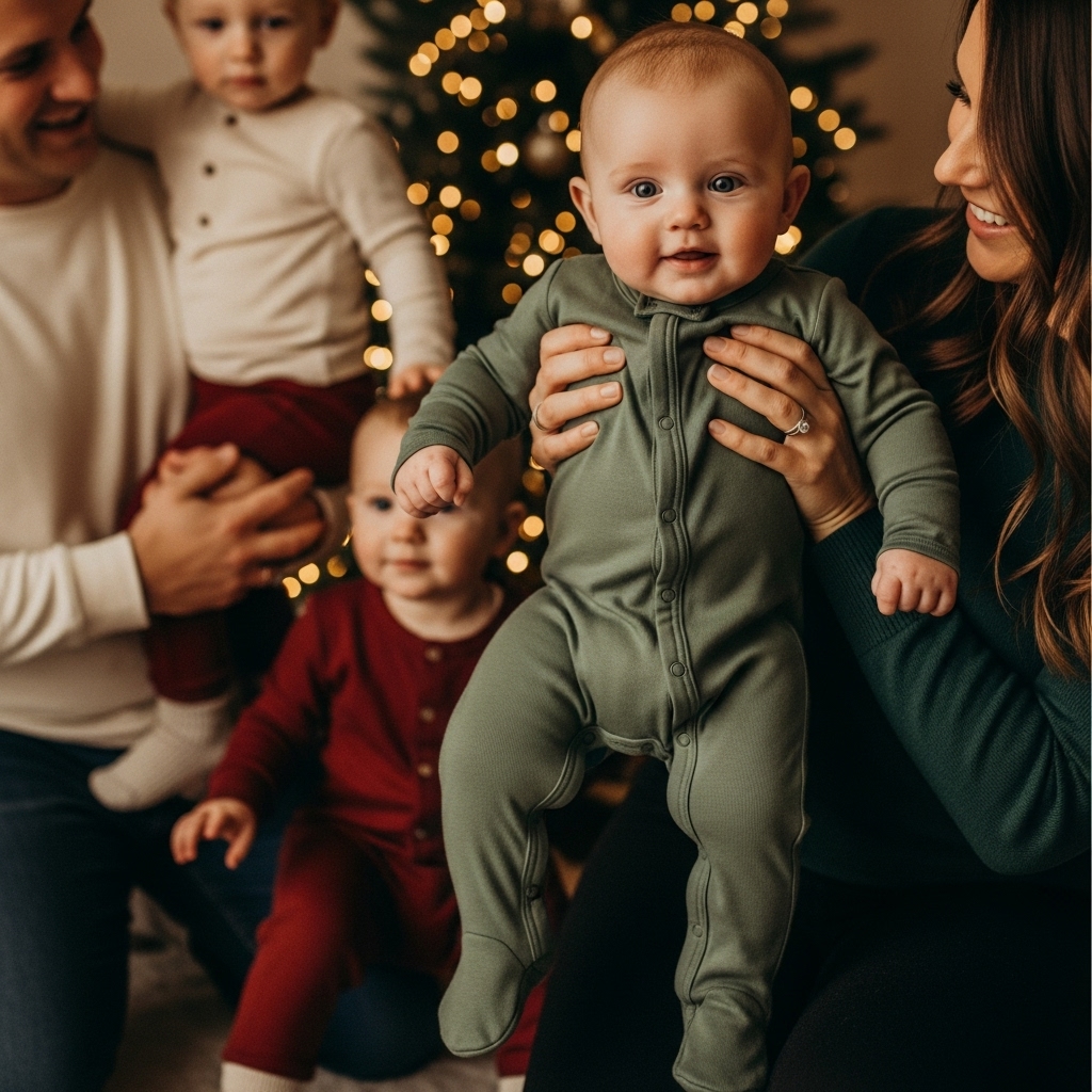 Soft, one-piece bamboo sleepers with cozy footed designs keep little ones snug through chilly holiday nights. Their breathable fabric offers gentle warmth, perfect for those late family gatherings or photo sessions when comfort matters most.