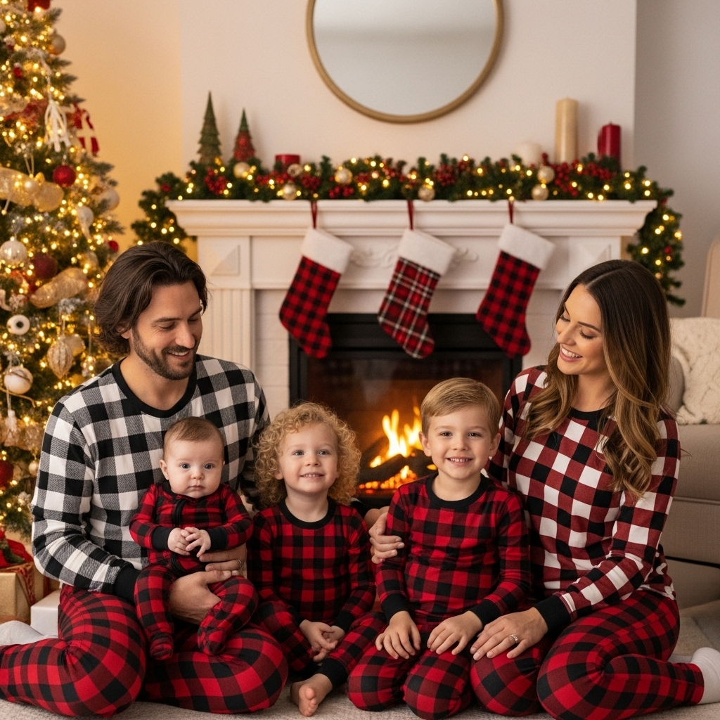 Coordinated sets using a classic plaid or buffalo check pattern in bamboo fabric offer a timeless holiday vibe. Bamboo’s drape and softness prevent the look from feeling bulky, while a range of sizes ensures everyone from babies to adults can match. The result is ideal for family photos in front of the fireplace or under a twinkling Christmas tree.