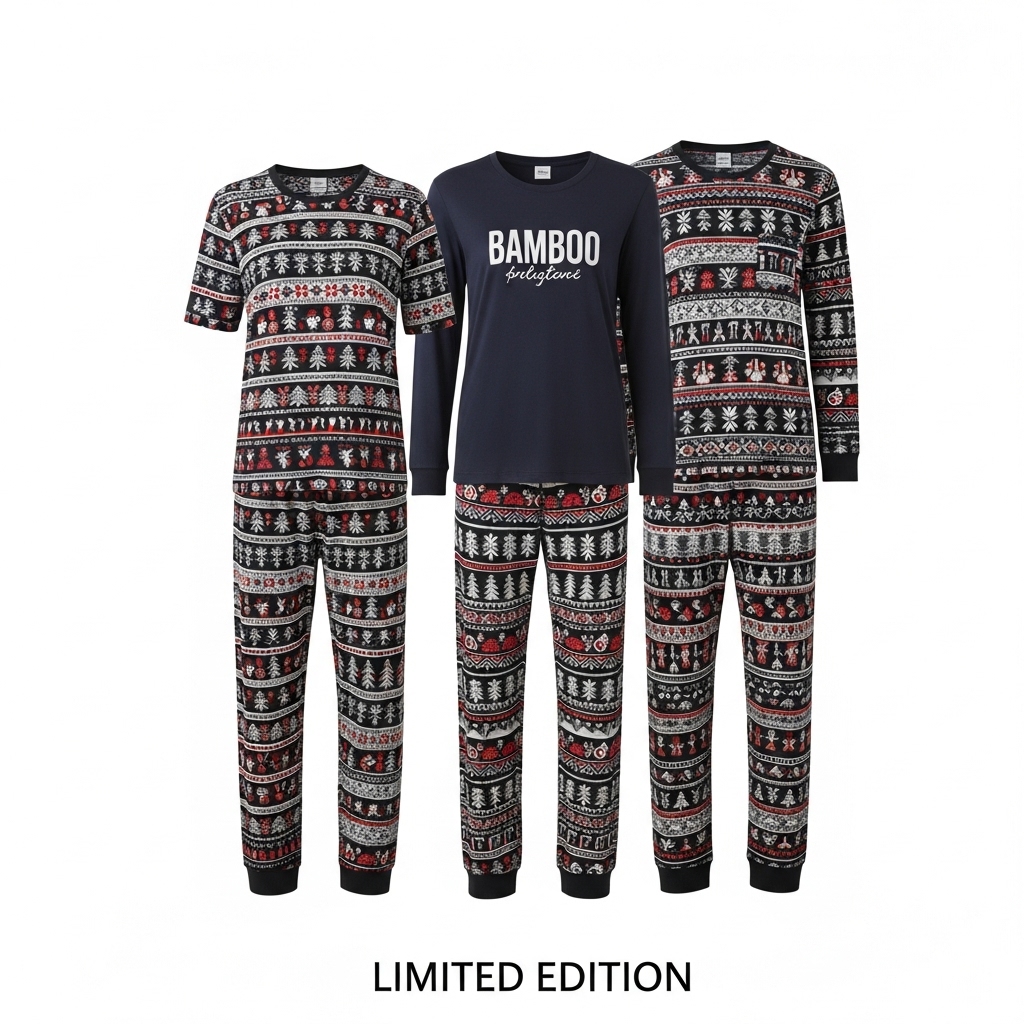 The bamboo fabric, gentle yet insulating, provides effortless comfort through long, laughter-filled winter nights. Whether lounging by the fire or unwrapping gifts, these sets blend elegance, ease, and cheerperfect for making holiday moments feel as magical as they look.