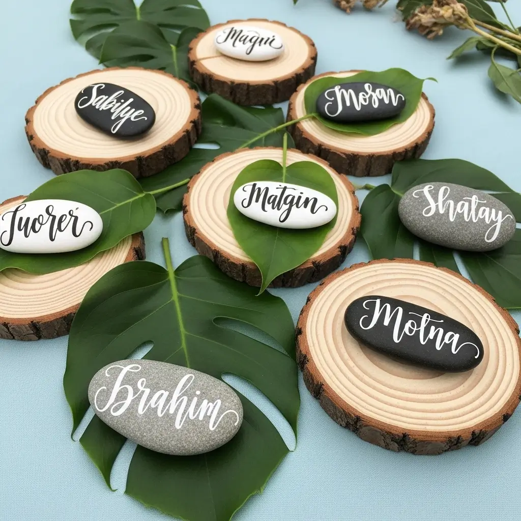 You can easily write names on elegant cardstock using graceful calligraphy, or get highly creative by carefully painting directly onto smooth stones, vibrant green leaves, or rustic wooden slices.