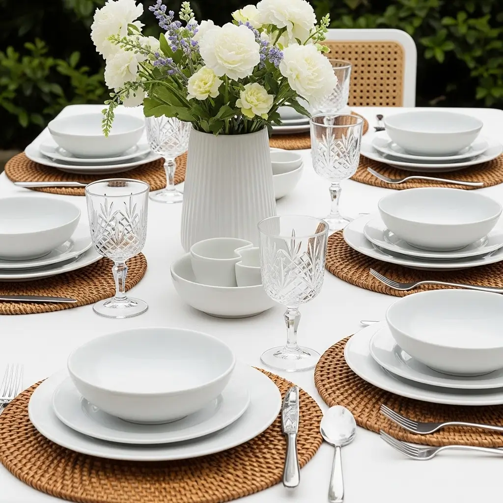 The natural fibers instantly introduce a charming rustic elegance that pairs flawlessly with crisp, white ceramic dinnerware and sparkling crystal glasses.