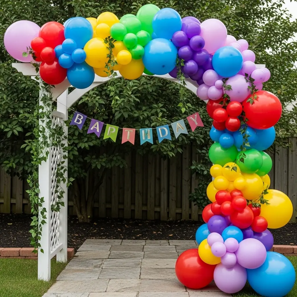 Constructing a vibrant balloon garland brings a joyful and celebratory atmosphere to your outdoor space.