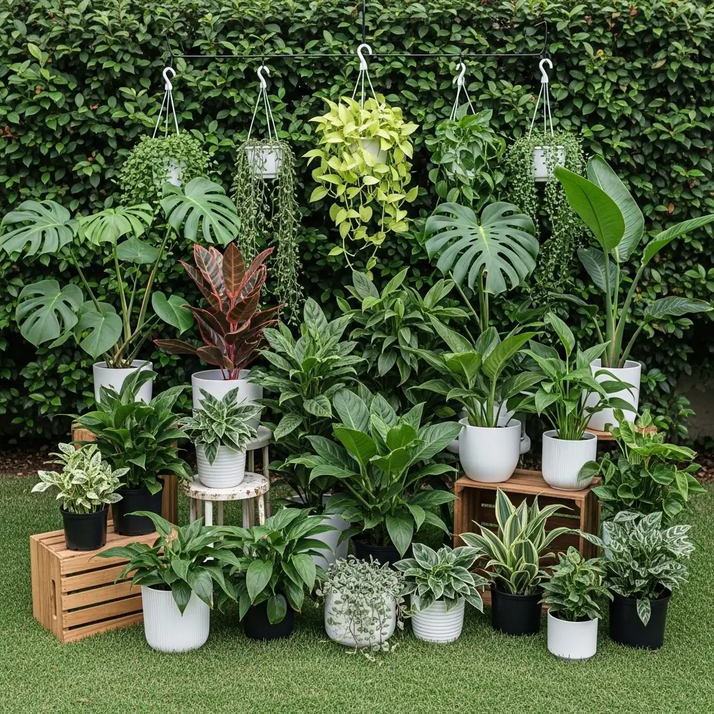 Mix different leaf textures, from broad monsteras to delicate trailing pothos, creating a lush, tropical atmosphere right in your backyard.