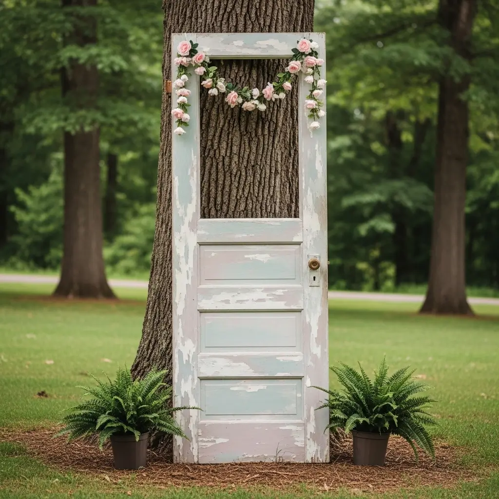 Paint the wood in a soft pastel shade or leave it distressed for that authentic, rustic farmhouse appeal. Lean the door safely against a sturdy tree trunk or fence, ensuring it is completely stable.