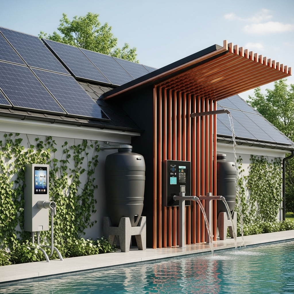 Solar eco-innovation is redefining modern green luxury . Rainwater harvesting and solar-heated systems are no longer hidden utilities they’re design features. Smart apps now regulate water flow with precision, while copper solar panels add a striking, architectural glow.