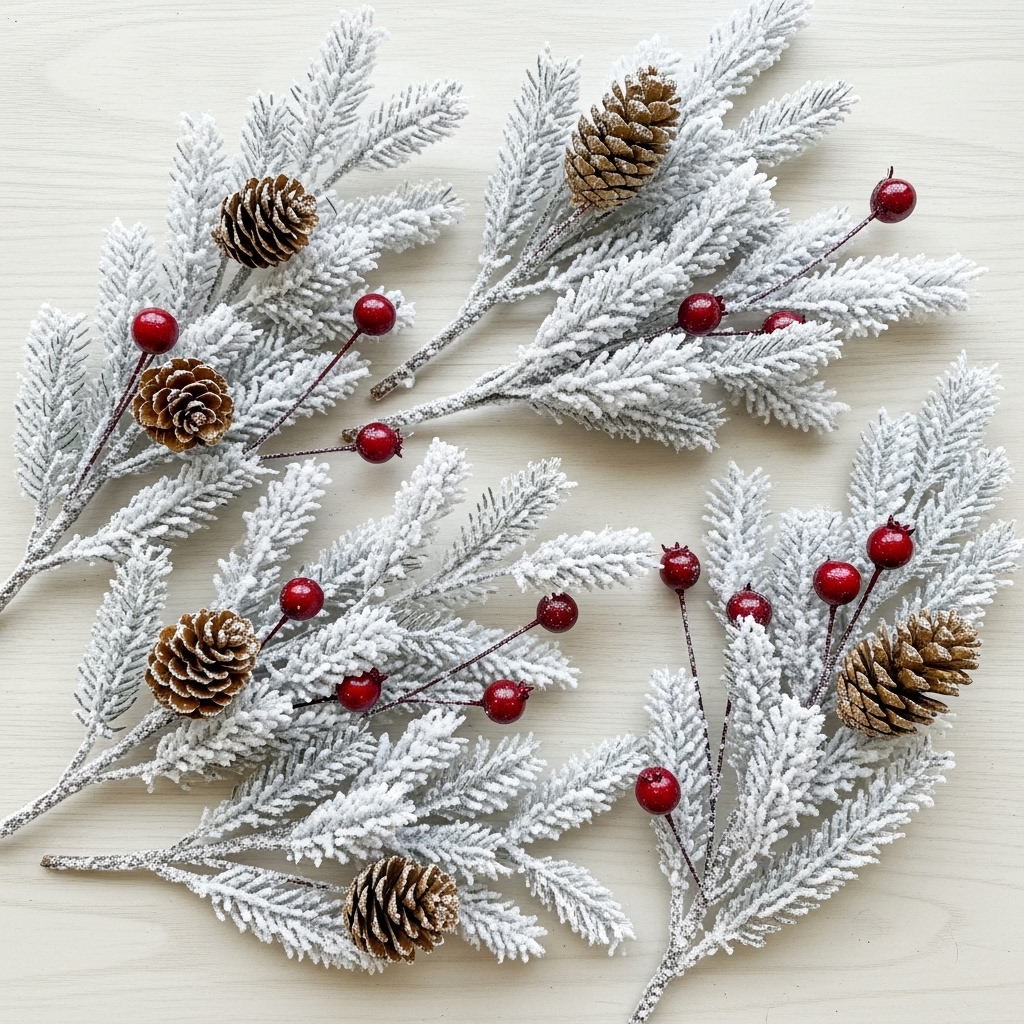 Texture alert! Flocked twigs dusted in white faux snow and glittery pinecones are like the cherry on top (or should I say, champagne on ice). They add rustic elegance without veering into “Christmas tree stuck in the forest” territory.