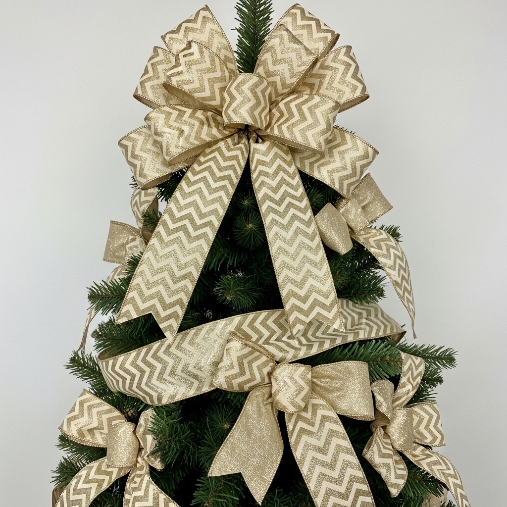 - Create a big bow topper instead of the traditional star or angel for a unique and chic finish.