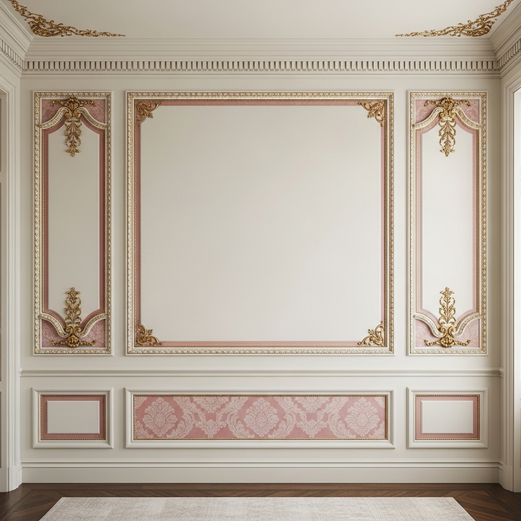 Plain walls are rarely seen in true Rococo decor. To achieve an authentic look, add architectural interest through applied wall moldings, known traditionally as boiserie. Create large, rectangular panels outlined with decorative trim on your main walls.