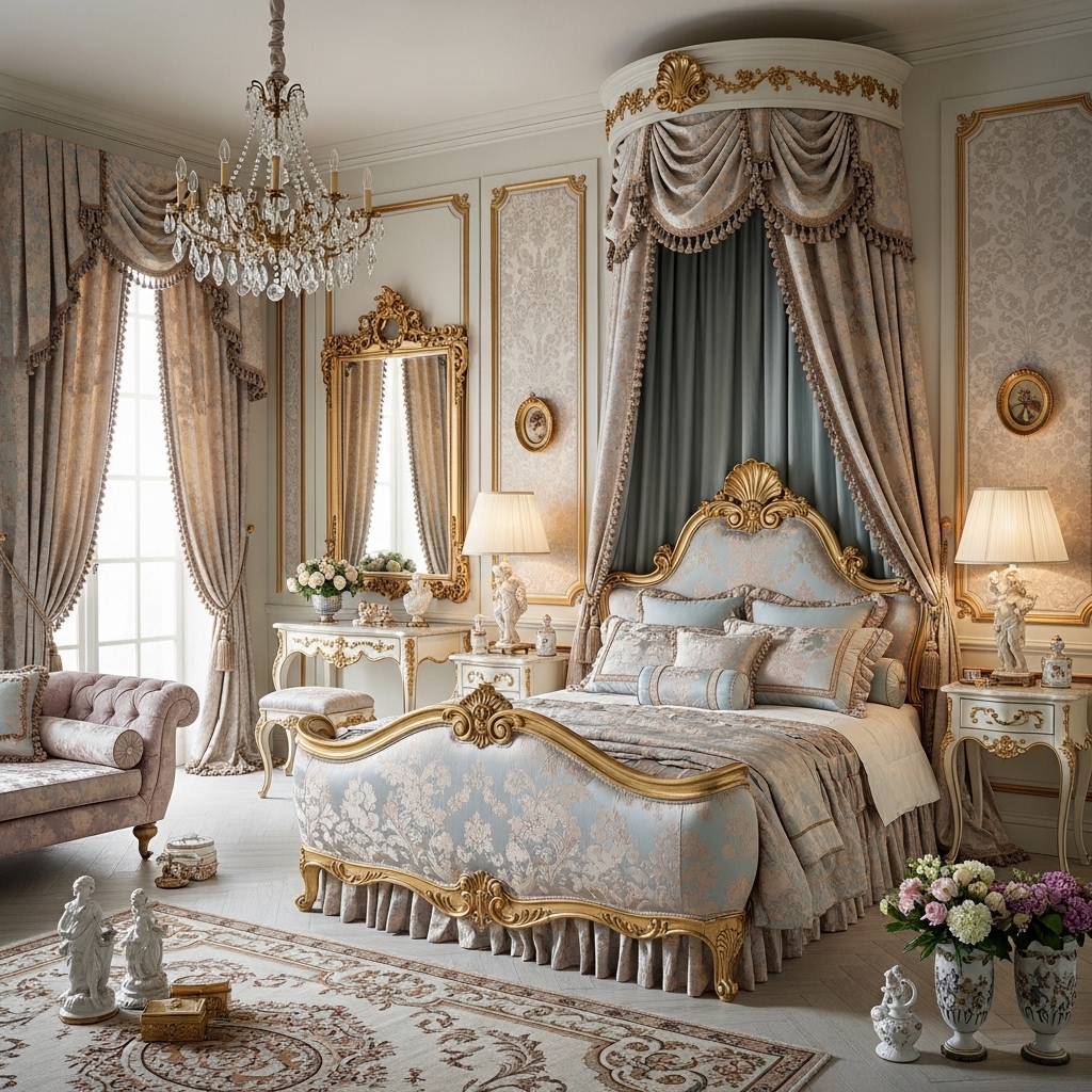 Choosing Rococo Revival for your bedroom means embracing a space dedicated entirely to comfort and beauty. Unlike earlier, heavier baroque styles, Rococo is lighthearted, airy, and incredibly feminine.