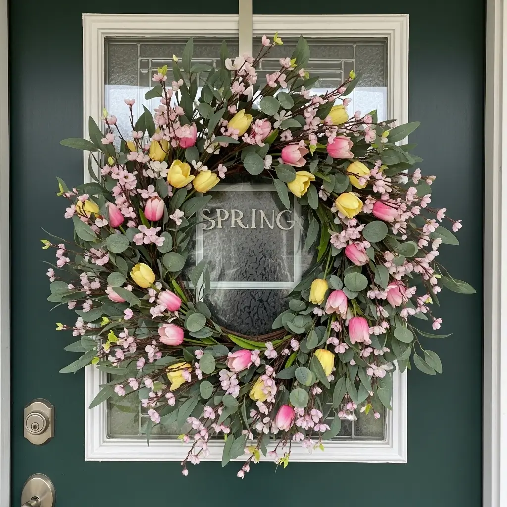 Your front door is the ultimate focal point, and adorning it with a gorgeous spring-themed wreath provides an instant seasonal refresh. Opt for designs overflowing with faux greenery, delicate pastel berries, and realistic silk flowers like peonies or hydrangeas.