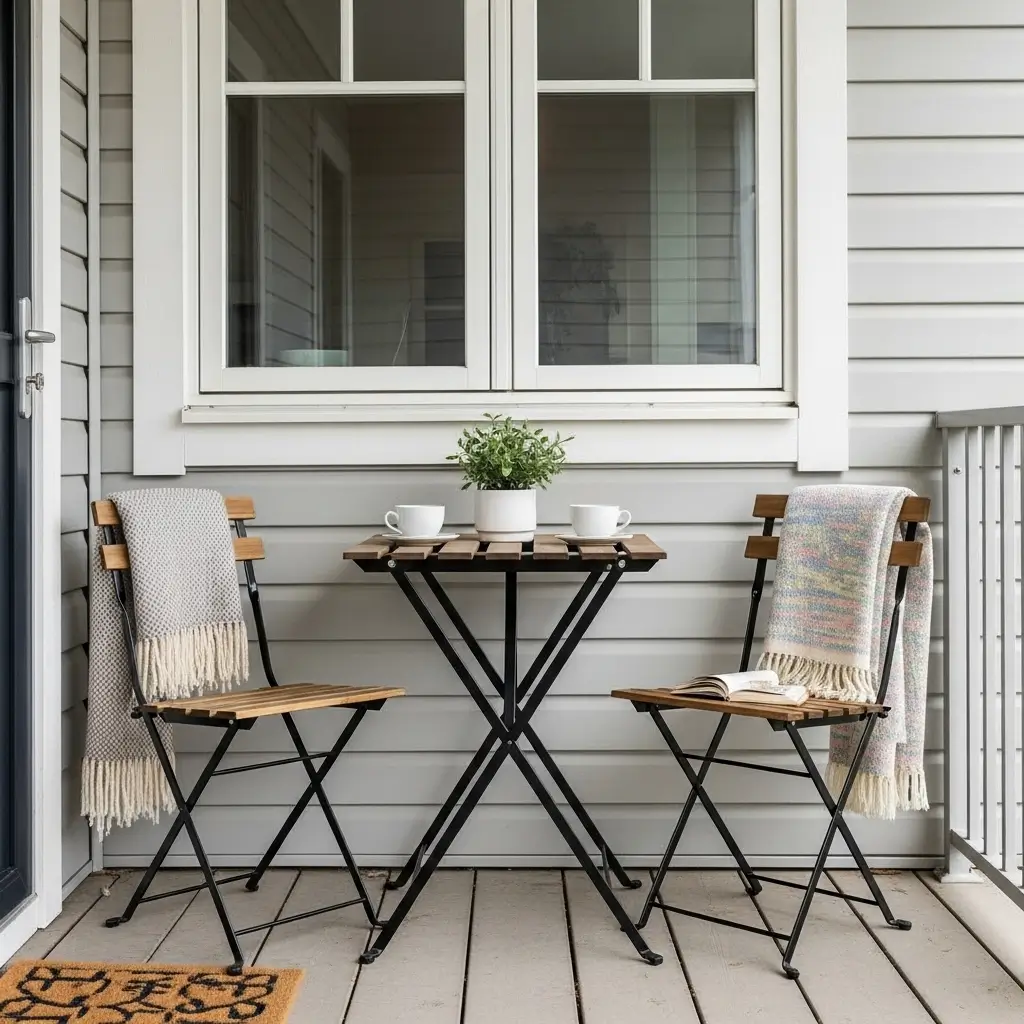 Transform your tiny porch into an intimate morning retreat by incorporating a slim, weather-resistant bistro seating set. Even the smallest entryways can usually accommodate a compact, foldable table and two lightweight chairs crafted from wrought iron or painted wood.