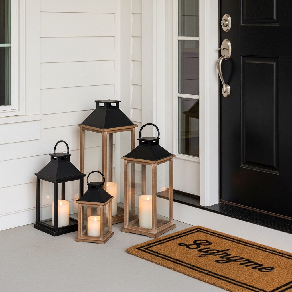 During the bright daytime, these lanterns serve as sophisticated architectural accessories that beautifully anchor your overall porch design while maximizing every inch of your compact outdoor entryway.