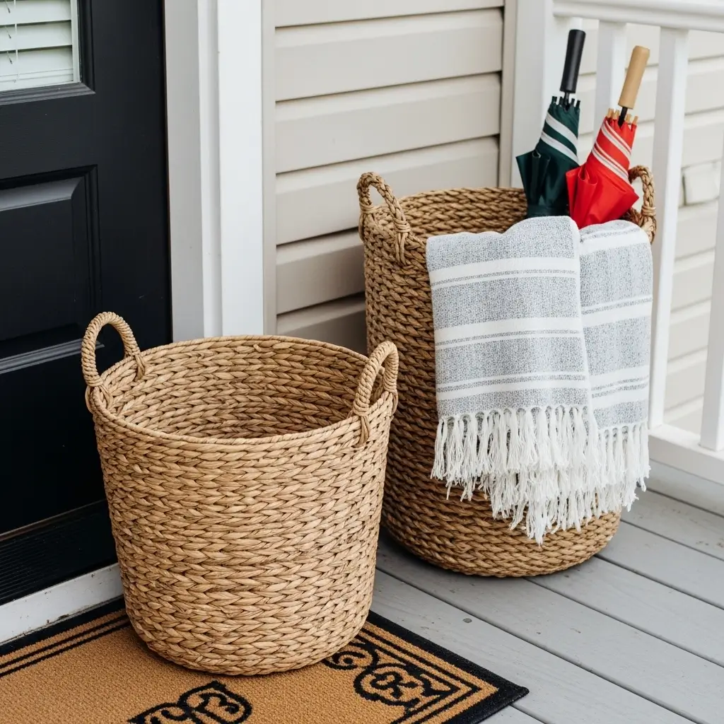 Use a sturdy, lined basket as an alternative cover for standard plastic plant pots, instantly upgrading your floral displays. Alternatively, strategically place a tall basket near the door to hold colorful spring umbrellas or lightweight outdoor blankets.