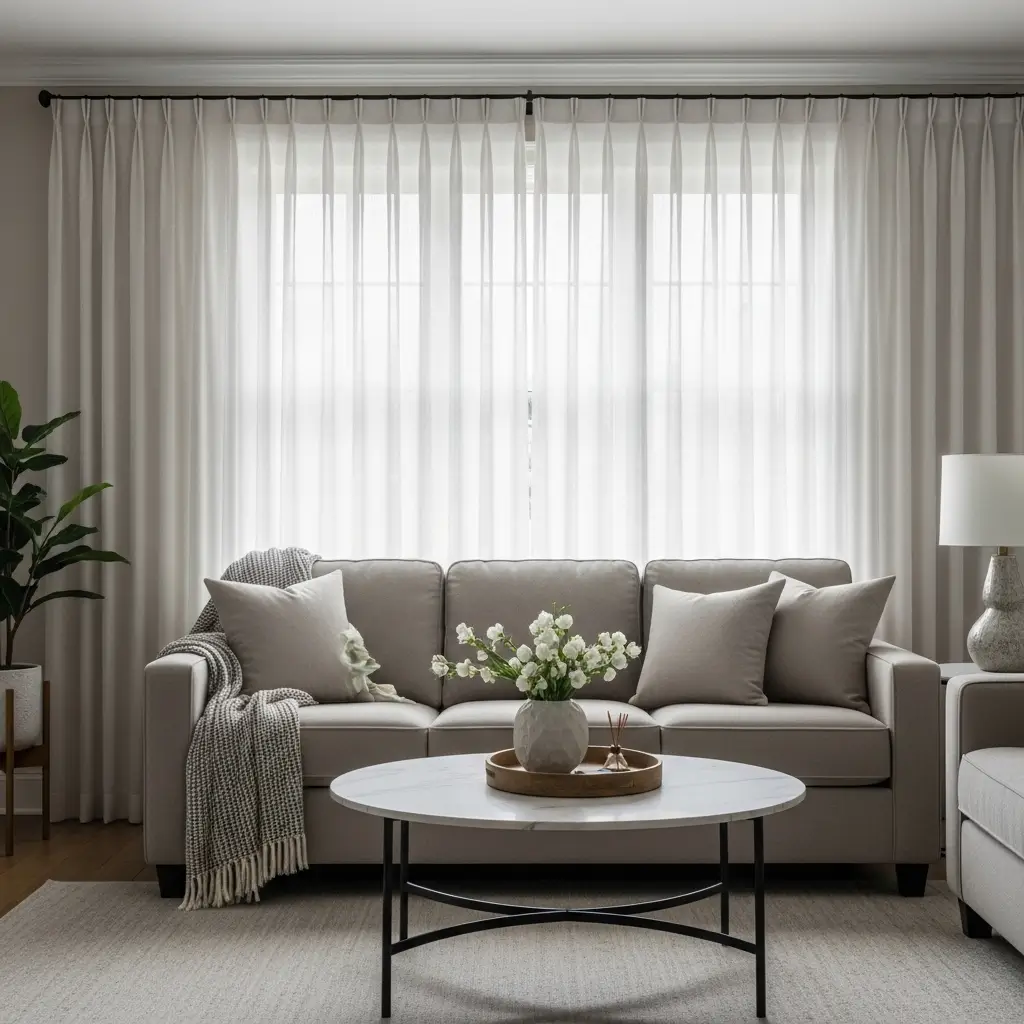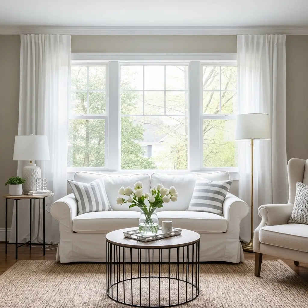 Heavy velvet drapes or dark thermal curtains are essential for winter warmth, but they feel incredibly oppressive once the sun starts shining. Replace them with airy, sheer curtains that allow maximum natural light to flood your living room.