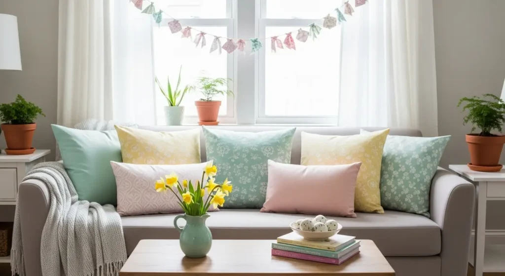 Swapping out heavy winter throw pillows for lighter alternatives is perhaps the easiest, most impactful budget change you can make. Instead of buying entirely new pillows, invest only in covers made of crisp cotton or airy linen in pastel shades, floral patterns, or bright botanical prints.